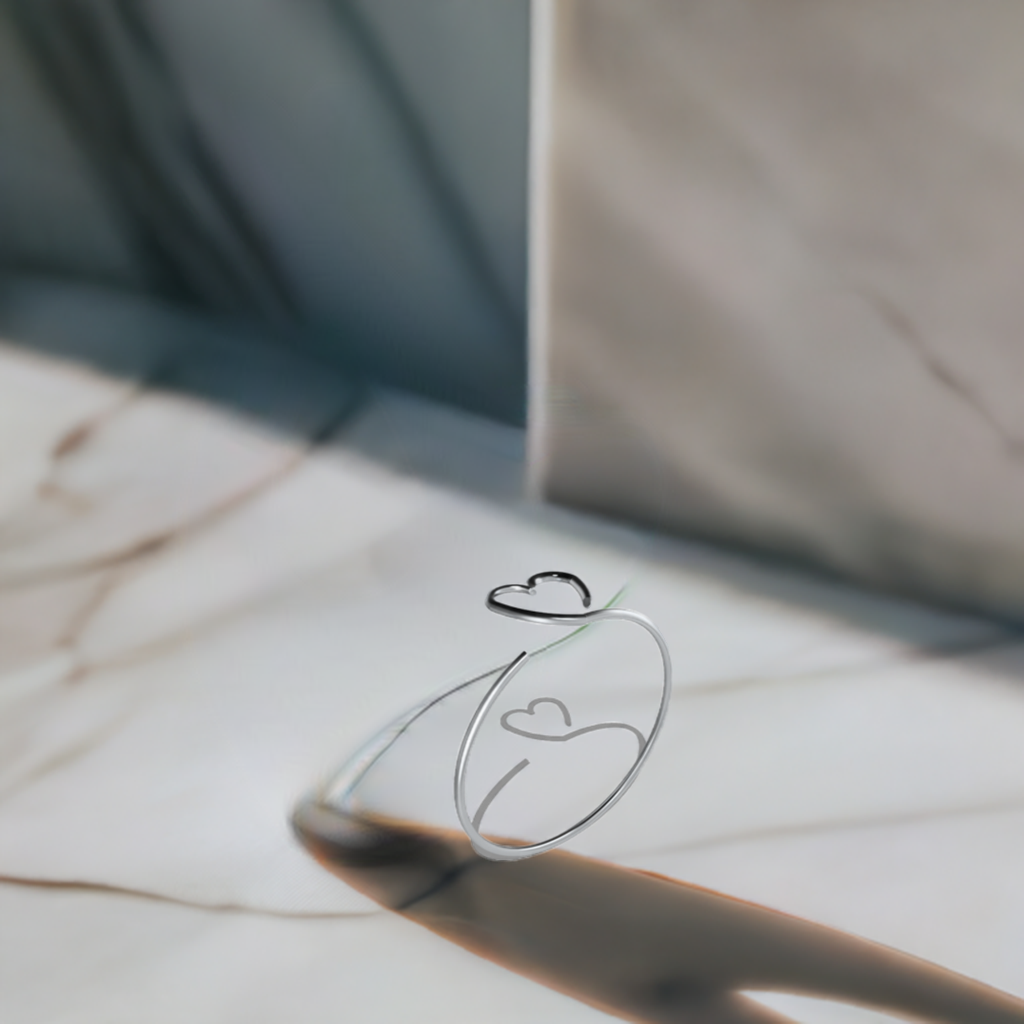 This pure silver or golden plated Heart Loop Ring symbolizes endless love, with its loop flowing in and out of a heart shape. The ring's design evokes a feeling of never-ending devotion and the durability of the materials ensures it will be cherished for years to come.